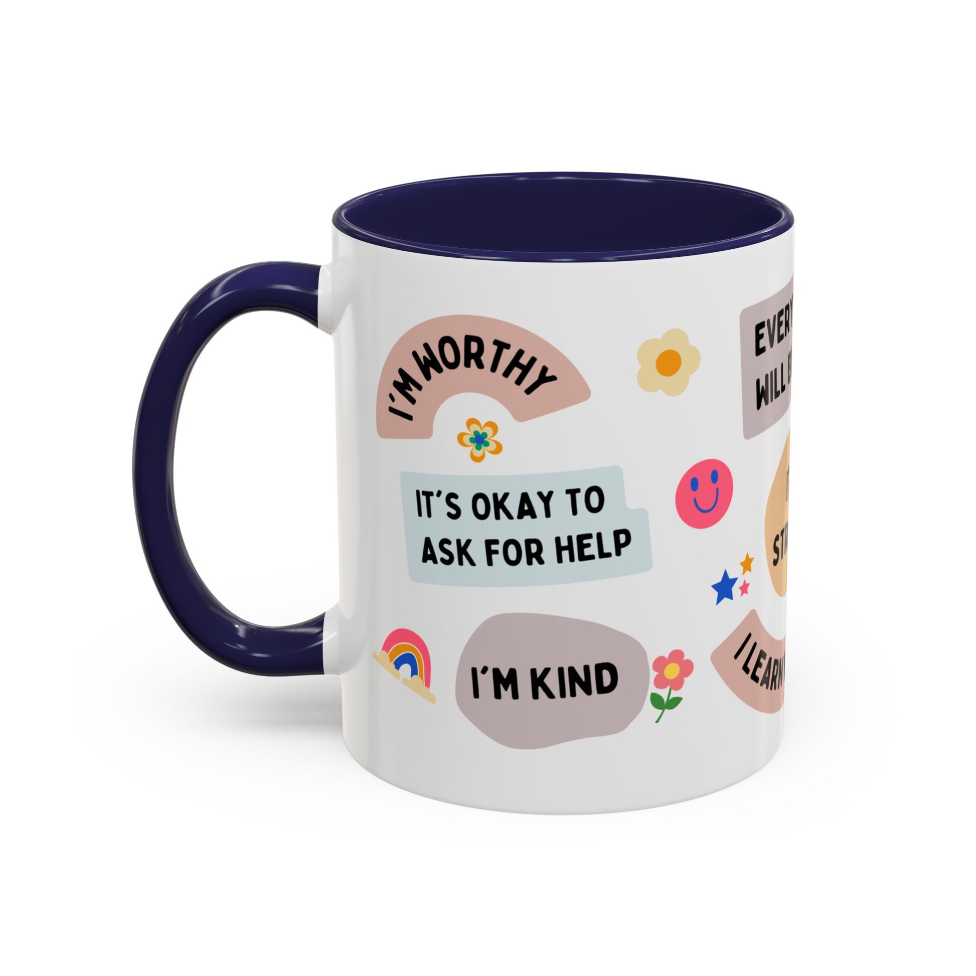 Start your day with a boost of motivation with this office mug featuring uplifting quotes. The vibrant colors and glossy finish are sure to brighten your mornings, making it perfect for daily use or as a thoughtful gift for friends and family. Ideal for those who enjoy inspirational messages with their morning coffee or tea. Relevant for birthdays, holidays, work anniversaries, and any occasion where a pick-me-up is needed. Product features - 11oz available - Microwave and dishwasher safe - Vibrant colors with eye-catching contrast - Ceramic material with multiple color options - Lead and BPA-free Care instructions - Clean in dishwasher or wash by hand with warm water and dish soap